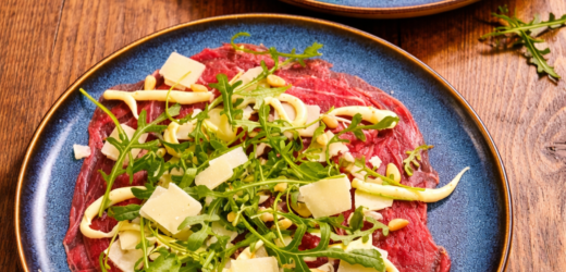 Carpaccio van hert met rucola, parmezaanse kaas en pijnboompitten
