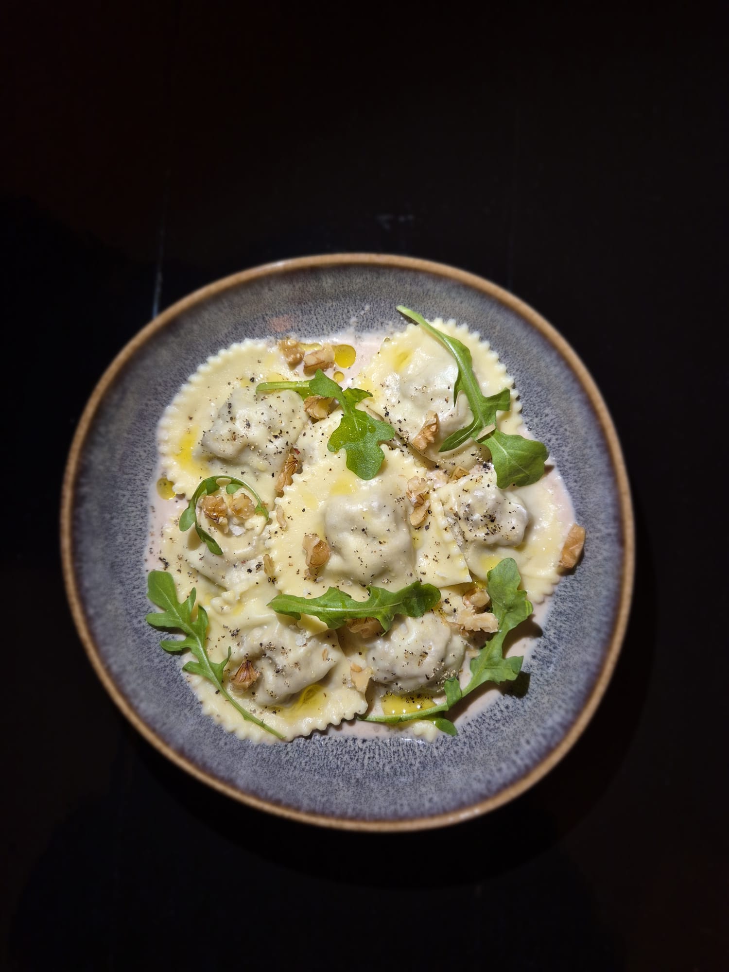 Ravioli met hertengehakt vulling & romige walnootsaus